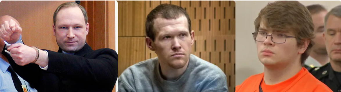Image above: Anders Breivik (left), Brenton Tarrant (middle), and Payton Gendron (right)